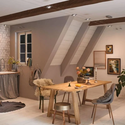 The modern aesthetic of the Paulmann Wire RoundMac system, with its sleek matt chrome finish, ensures it complements a wide range of interior designs. This adaptability makes it a splendid addition to various settings, from contemporary homes to more traditional spaces. The sophisticated look is matched by thoughtful functionality, making it a product that balances style and utility effortlessly.