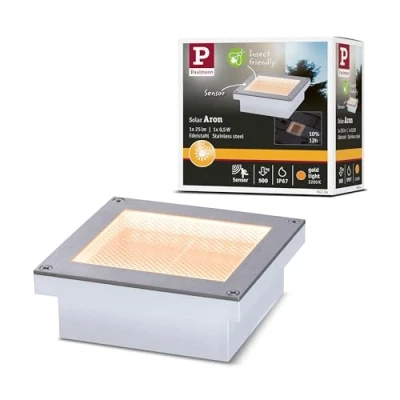 Paulmann 94724 LED solar in ground light Aron motion sensor insect friendly IP67 100x100mm 2200K 0.5W 25lm white square stainless steel, plastic