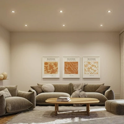 Lights.coRound LED recessed light Cole Coin, IP44, set of 3 Love at second sight! The Cole recessed lights in black almost blend into the ceiling thanks to their recessed bulbs. But once you've spotted them, you won't want to look away. The light from the recessed coins on the matt black surface provides soft, glare-free illumination. They also impress with their brilliant technology: the replaceable LED coins provide pleasant warm white light and are dimmable in three stages using a conventional light switch.