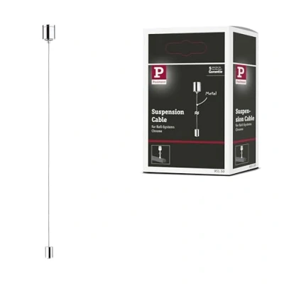 Lights.coWire suspension with elements in shiny chrome for VariLine and URail rails Thanks to this cable suspension, the rails of the VariLine and URail systems from Paulmann can be installed with up to 2 m suspension. The canopy, which is screwed to the ceiling, as well as the lower bracket, for which there are mounting holes on the rail, provide a noble appearance as shiny chrome cylinders. The cord suspension is used for suspension; separately available feeders are required for power supply.