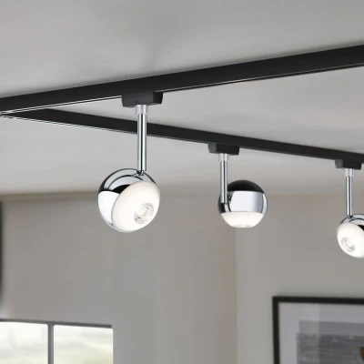 Lights.coLED spot Capsule II in matte black and chrome for the URail rail The LED spot Capsule II in the color combination of matte black and chrome is an LED spot for the URail rail system. The modern designed spot in spherical shape can be aligned to direct the warm white light of the LEDs to a specific area. The spot is fixed in the rail by means of bayonet fixing and can also be dimmed via an external dimmer (R, L, C)