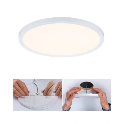 Wide-area light with three-stage dimmability via the wall switch - Areo recessed LED panel The Areo recessed LED light consists of a round diffuser surrounded by a thin plastic rim. This gives it a simple yet modern design that blends unobtrusively into the interior. The special feature of the recessed light is the 3-step dimming, which is controlled via a conventional wall switch by repeated switching. A memory function remembers the last setting and lets Areo light up directly in the last selected brightness when it is switched on again. The possible applications of this recessed panel are very diverse: in addition to wall and ceiling mounting and use in various living areas, the LED panel can also be used in bathrooms and damp rooms because it is equipped with the appropriate splash protection - Suitable for various installation diameters thanks to sliding spring clips on the back - 3 dimming levels 100 %, 50 % and 25 % - Effective LED technology
