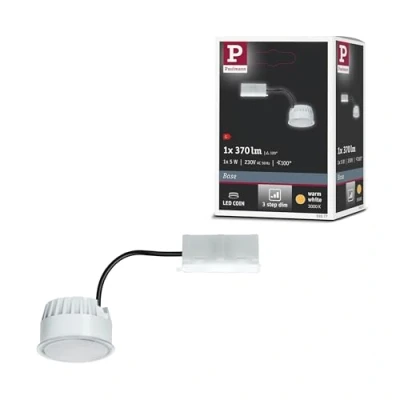 Dimmable – can be dimmed in 3 steps with standard light switch Colour temperature: 3000 Kelvin: warm white light, more neutral than incandescent lamp, universally applicable Super flat – the installation is also possible with low cavity depth of only 30 mm Brand manufacturer – Paulmann has turned light out passion, and for 40 years Economical – LED technology saves up to 80% energy compared to conventional light bulbs