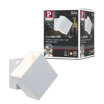 Paulmann Cybo LED outdoor wall light, 2,700 K, 10x10 cm, white