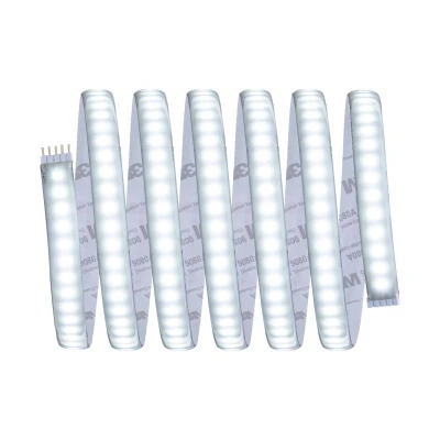 LED-Strip MaxLED 1000: Extension to the basic set - can be shortened With a length of 2.5 metres and powerful LEDs, this extension strip from Paulmann's MaxLED range is even suitable as the main light source in the room. One metre of MaxLED 1000 shines as brightly as a conventional 75 watt incandescent lamp. With IP44 protection, MaxLED is even designed for use in damp rooms and outdoors. This is ensured by a special coating to protect against dust and splash water. The extension strip can only be used with the corresponding basic set including transformer. The plastic used is flexible, making it possible to attach the strip to flat and uneven surfaces. The basic set is available as an accessory. - Can be shortened every 45 cm - equipped with self-adhesive back for easy mounting - simple plug-in system - a real highlight for profiles -