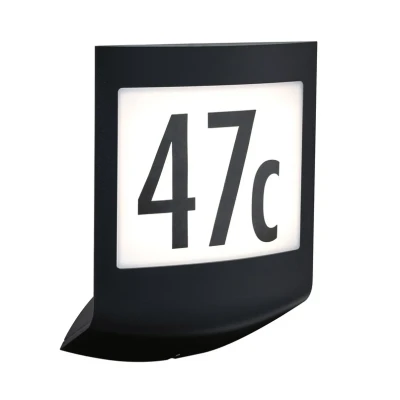 Lights.coLED wall house number light Padea with sensorThe anthracite plastic LED outdoor wall light Padea comes with a set of numbers and letters to stick the house number. It is equipped with a twilight and motion sensor.- Detection range sensor 90°, range 4 - 8 meters- On 20 lux- Duty cycle 30 seconds