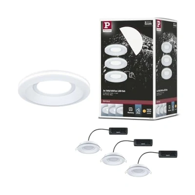 AmazonINDIVIDUAL LIGHT DESIGN: the warm white light colour of 3000K creates an inviting lighting atmosphere in the bathroom HIGH FLEXIBILITY: thanks to the 3 switching levels, the light can be controlled flexibly IDEAL FOR DAMP ROOMS: installation of recessed luminaires even in the shower, thanks to the IP-protection of IP65 EASY MOUNTING: the low installation depth of just 55 mm and the interlinkable design make it easy to install the recessed luminaires VERSATILE LIGHT DESIGN: Whether main light, decorative ring or a combination of both - light according to individual wishes This product is a containing product. Containing products are luminaires that can be disassembled for a separate check of the light source(s) they contain. This product contains a light source of energy efficiency class E.