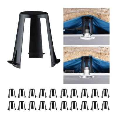 Spacer for recessed ceiling lights - set of 20 This black plastic spacer from Paulmann enables the installation of recessed lights in insulated suspended ceilings. The spacer creates a safe distance between the LED, vapour barrier film and insulation material and offers secure installation of all standard-sized recessed lights. The plastic legs can be bent and enable installation in installation openings with Ø 6.2 to 9 cm. This set includes 20 spacers.