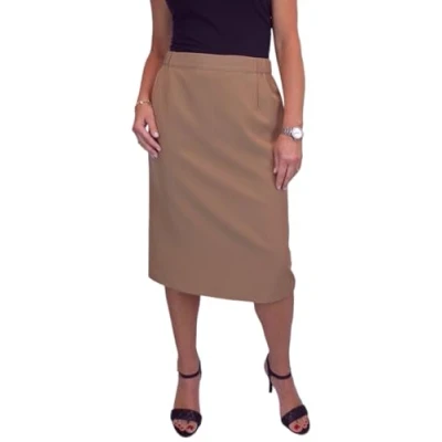 Paulo Due Lined Pencil Skirt for Women Smart Ladies Below Knee Elasticated Waist Office Evening Tan 10 24 (14)