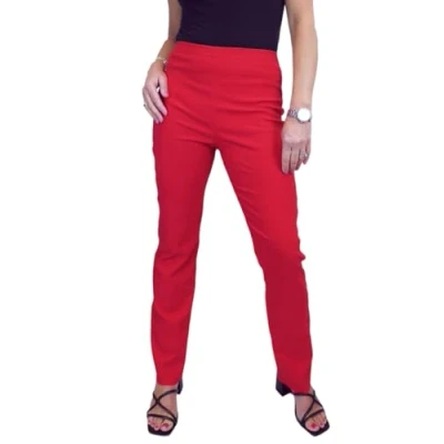 Paulo Due Women's Elasticated Waist Trousers Pull On High Straight Leg Evening Day Office Work Red 8 22 (18)