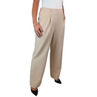 Paulo Due Women's Wide Leg Formal Trousers, High Waist, Pleated Smart Office Workwear Beige 10 22 (20)
