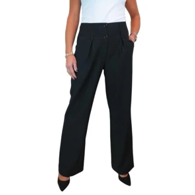 Paulo Due Women's Wide Leg Formal Trousers, High Waist, Pleated Smart Office Workwear Black 10 22 (20)