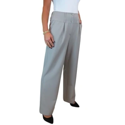 Paulo Due Women's Wide Leg Formal Trousers, High Waist, Pleated Smart Office Workwear Light Grey 10 22 (20)