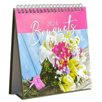 PaulStore 2025 Desk Top Calendar Month to View Flip Over Home Office School Square Planner (Bouquets)