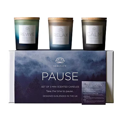 72 Advantage card points. Serenity Pause Set of 3 Candles 70g FREE Delivery on orders over 45 GBP.