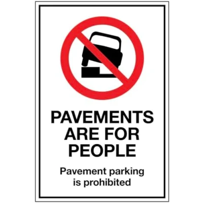 Pavements are for people Parking on the pavement is prohibited (1mm aluminium sign)