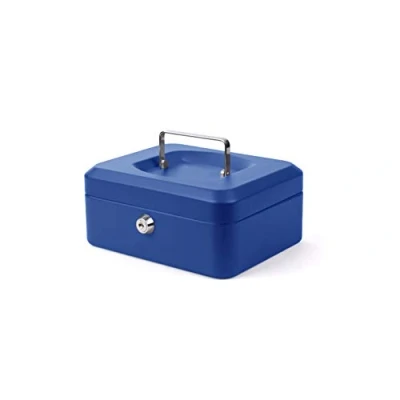 Key Lock: Cash box has a privacy lock with 2 keys to keep valuables safe, it’s perfect for kids to learn to manage money and for adults to take valuables out removable Money Tray: Cash box has an interior cash tray with compartments to help organize coins, keys, rings. The bottom of the money box can help to store checks, receipts and valuables Sturdy Handle: Steel material is reliable for cash lock box, resistant to damage from drops and impacts. Equipped with a convenient carrying handle so that you can carry locking cash box easily Size and Color: 160 x 200x 90 mm, blue glossy. Perfect safe lock box for festivals, supermarket cashier, fundraisers and more. Curved edges to make it comfortable and safe to hold Perfect Money Box: For indoor and outdoor use. Such as School, Supermarket, Storage Lockers, Cabinets, Family, Yard Sale and so on. Suitable to store bills, coins, checks and receipts