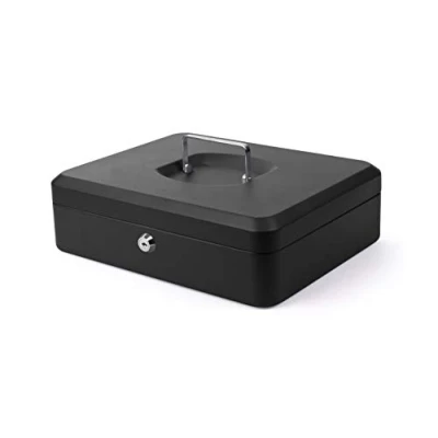 Key Lock: Cash box has a privacy lock with 2 keys to keep valuables safe, it’s perfect for kids to learn to manage money and for adults to take valuables out removable Money Tray: Cash box has an interior cash tray with compartments to help organize coins, keys, rings. The bottom of the money box can help to store checks, receipts and valuables Sturdy Handle: Steel material is reliable for cash lock box, resistant to damage from drops and impacts. Equipped with a convenient carrying handle so that you can carry locking cash box easily Size and Color: 240 x 300x 90 mm mm, black. Perfect safe lock box for festivals, supermarket cashier, fundraisers and more. Curved edges to make it comfortable and safe to hold Perfect Money Box: For indoor and outdoor use. Such as School, Supermarket, Storage Lockers, Cabinets, Family, Yard Sale and so on. Suitable to store bills, coins, checks and receipts