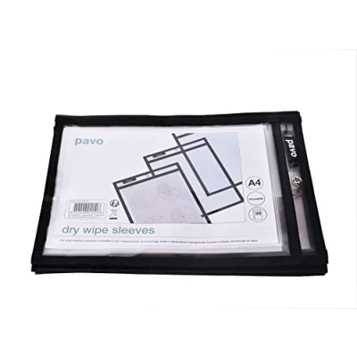 Pavo Dry Erase Sheet, Pockets, Black 30 Pieces