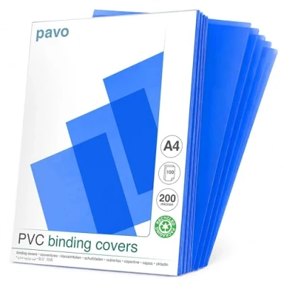 PAVO Premium A4 200 μ PVC Glass Cover Transparent/Blue (Pack of 100)