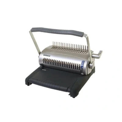 Ideal for producing medium to large internal reports and presentations to a professional standard Able to punch up to 20 sheets of 80gsm at once Binding capacity of 500 A4sheets with a comb binding capacity of 40mm Has an adjustable edge guide for accurate paper alignment and a paper/comb gauge, which advises the correct size of comb to use Integral paper tray to collect punch holes and a comb storage compartment at the front