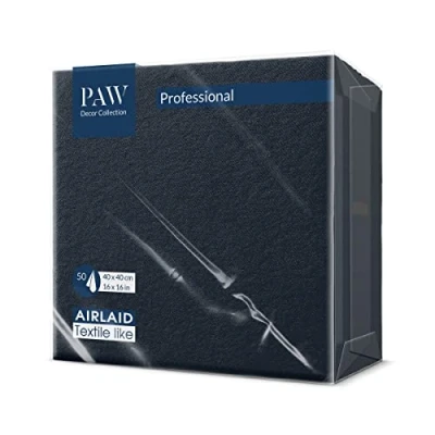 Premium napkins made of airlaid with a weight of 55 g/m², FSC-certified, made in Europe. Measures 40 x 40 cm, pack contains 50 pieces. The product has a certificate issued by the Institute of National Health proving that our products are allowed to come into contact with food and are environmentally friendly and meet the requirements of BFR XXXVI. Uniform, elegant colours create a professional and original decoration that can change the face of any party, regardless of the place and occasion. Thanks to the matching table decorations, we turn an everyday meal into a delicious feast and every celebration into an unforgettable experience for the guests. PAW Professional is a brand aimed at the hospitality and catering industry as well as everyday use at home parties. The airlaid products are characterised by their high-quality, hard-wearing material that is easy to lay and absorbs liquids well, so they can be used both in the HoReCa area and at home. They are an excellent decoration for any table, to which they give an elegant look.
