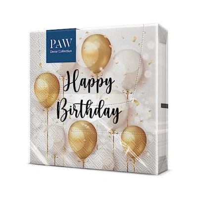 PAW Birthday Napkins 3 Ply (33 x 33 cm) 20 Pieces Perfect for Parties, Birthdays, Celebrations Paper with Balloon Motif Gold, White Table Decoration Color: Gold Celebration