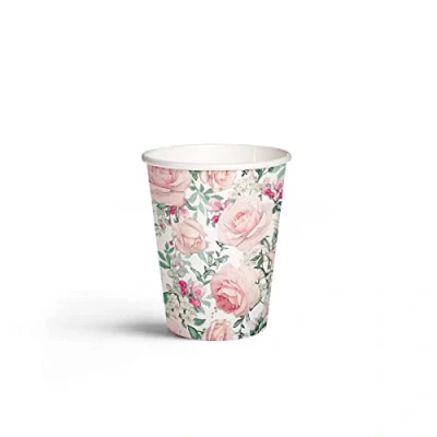 PAW Paper Cups (250 ml) I 8 Pieces Mugs Printed with Water Based Colours Disposable for Wedding, Kids Party, Party Supplies, Coffee, Tea Coffee Roses, Classic, Elegant
