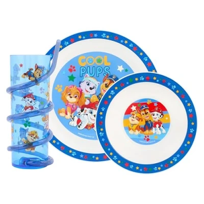 Complete Mealtime Set: Includes a vibrant plate, durable bowl, and a twisty straw tumbler, all featuring beloved Paw Patrol characters Chase, Marshall, Rubble, Skye, and Everest. Child-Friendly Design: Perfectly sized for small hands, this set encourages self-feeding and adds a fun, adventurous touch to every meal. Safe and Durable: Made from BPA-free materials, this tableware set is designed to withstand the rigors of daily use while ensuring your child's safety. Easy to Clean: Dishwasher-safe components make clean-up quick and effortless, giving parents more time to enjoy with their kids. Perfect Gift: Ideal for birthdays, holidays, or any special occasion, this set is a must-have for young Paw Patrol fans, bringing excitement to the dining table. Encourages Independence: Designed to make mealtime engaging, helping children develop self-feeding skills in a fun and interactive way.
