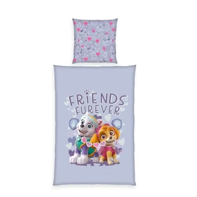 Paw Patrol Bed Linen, Pillowcase Approx. 80 x cm, Duvet Cover 135 200 with Button Placket, 100% Cotton