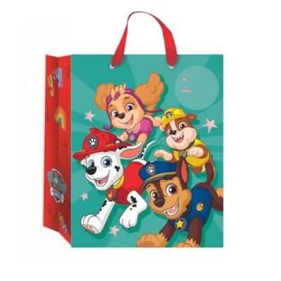 "Paw Patrol" is a hit animated series where a group of heroic puppies, led by the tech-savvy Ryder, tackle rescue missions in Adventure Bay. Each pup has unique skills and vehicles, teaching teamwork, problem-solving, and bravery. The franchise's appeal extends to toys, clothing, and stationery, making it a favorite for young children and families. Bring a smile to the Recipient: Our fully Licensed range of Gift Bags make a brilliant and memorable extra to any gift for a special friend or family member. Using the most up to date design on the market, this Paw Patrol Gift Bag is the perfect gift to go with a present for that special someone. Great for the Environment: Our Gift Bags are made of FSC certified products that has passed the highest Environmental Regulation checks. The Gift Bag is fully recyclable Brought to you by Europe's Number One Licensed Publisher: Every Danilo product is 100% Officially Licensed. This guarantees the product has been approved by the Acts themselves and features the current and most up to date designs on our gift bags The Dimensions of this Gift Bag are 33 cm x 26cm x 13.5cm wide and will fit a variety of Gifts inside