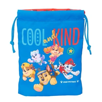 Guarantee and quality: Paw Patrol Cool official multipurpose bag. Ideal for snacks. 2 years warranty UNIQUE DESIGN: Made from a very durable polyester material. Easy to wash SPACIOUS AND LIGHTWEIGHT: Ultralight footmuff. Reinforced seams Easy and manual closure by pulling the laces. Measurements: Width 200 mm, Length 250 mm. Capacity 6 L. Weight 0.25 kg ALL AUDIENCES: Great for kids, adults and teens RESISTANCE AND DURABILITY: This product is specially designed with durability in mind, made with high strength materials to ensure that it can be used in all kinds of activities, ensuring its functionality