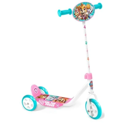 Paw Patrol Girl's 3 Wheel Scooter Adjustable Height Wide Non Slip Tray Anti Pinch Handles PVC Wheels Decorated Plate Pink Blue