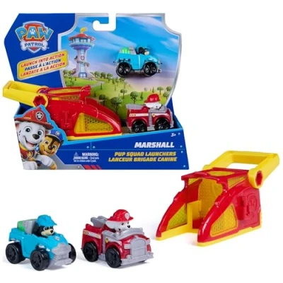 2 Pup Squad Racers: Dive into action-packed adventures with two 6,3 cm racers, featuring real working wheels, for dynamic and thrilling playtime excitement Launch Into Action: Insert your racer into the vehicle launcher, then pull the handle down to launch them into action for thrilling pretend play adventures Portable Playtime Adventures: Secure your racers to the launcher using the key lock storage feature, to keep your Pup Squad Racers safe and take them wherever you go PAWsome Gifts for Kids: When buying toys for ages 2-4, PAW nursery toys and toddler toys are toys for girls and boys who love toy cars and plushies, as alternatives to dolls, dinosaur toys or a train set Includes: 1 Launcher, 2 Pup Squad Racers Collect Them All: Expand your collection of PAW Patrol toys for kids with Rescue Wheels toy trucks, PAW Patrol film toys, dragon toys, stuffed animals, toy figures & playsets (each sold separately), Manufacturer: Spin Master