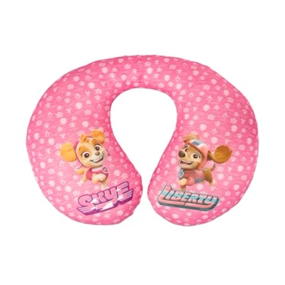 Paw Patrol Pink Neck Pillow with Skye and Liberty Characters. Perfect for Travel. Extra Comfortable Washable.
