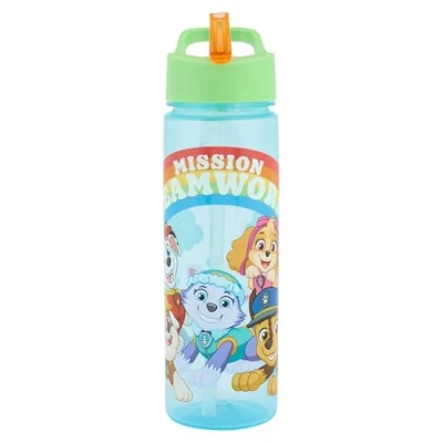 PAW Patrol Water Bottle with Reusable Straw Kids 600ml PP for Boys in Blue/Green Official Merchandise by Polar Gear BPA Free & Recyclable Plastic School Nursery Sports Picnic