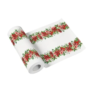 Premium Airlaid tablecloth with a weight of 55 g/m2, FSC certified, made in Europe. Size 40 x 2400 cm; perforated every 120 cm. The product is certified by the National Institute of Public Health, demonstrating that our products can come into contact with food and are environmentally friendly. Compared to tissue paper, the Airlaid raw material is much stronger, more porous and softer. Its main features are: softness, does not scratch the surface, fabric structure, high moisture absorption. Welcome to the land of colours of Christmas with the Glory Poinsettia table runners. Its charming motif depicting wonderful poinsettias in rich colours will bring magic and joy to your table. Emphasize the uniqueness of the moment when these charming flowers add charm and festive atmosphere to your gatherings. Perfect for lovers of Christmas colours and unique decorations.