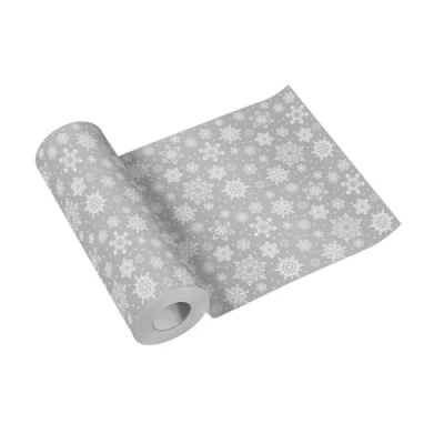 Premium Airlaid tablecloth with a weight of 55 g/m2, FSC certified, made in Europe. Size 40 x 2400 cm; perforated every 120 cm. The product is certified by the National Institute of Public Health, demonstrating that our products can come into contact with food and are environmentally friendly. Compared to tissue paper, the Airlaid raw material is much stronger, more porous and softer. Its main features are: softness, does not scratch the surface, fabric structure, high moisture absorption. Fall in love with the magic of winter with the "Snowflakes Silver" tread. Its charming design with white snowflakes on a red background will bring the extraordinary charm of winter and holiday to your home. Add warmth and elegance to your parties by wrapping yourself in the magic of delicate snowflakes. Discover the unique moment when winter paints landscapes with snowy wonders. Perfect for lovers of winter charm and Christmas dreams.