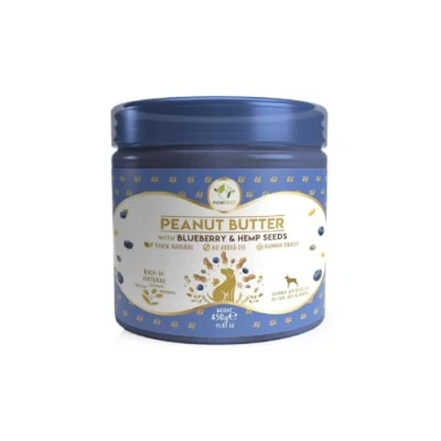 Pawfect Peanut Butter with Blueberries & Hempseeds for Dogs Puppies 100% Natural No Added Sugar, Salt, Palm Oil Sweeteners, Xylitol Healthy Dog Treat (450g/15.87oz)