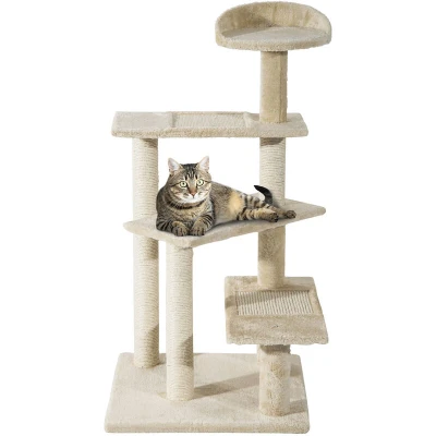 PawHut 100 cm Cat Tree for Indoor Cats Kitten Scratch Scratching Post Climbing Tower Activity Centre Beige