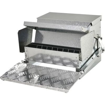General description Are you unable to enjoy a short trip because of feeding chickens at home? Do you often forget to feed chickens and make them hungry? The PawHut Automatic Chicken Feeder is designed to alleviate these concerns. With an 11.5kg capacity, it can feed up to 10 chickens for about a week, allowing you to save time and money while ensuring your chickens have access to food whenever they need it. Technical specifications Color: Silver Material: Galvanized Steel, Aluminum Overall Dimension: 42L x 51D x 28.5H cm Top Rain-cover Size: 36L x 15.5D x 3H cm Feeding Capacity: 11.5kg Feeding Outlet Size: 34.5L x 8.3D x 8.5H cm Rain-cover Size: 36L x 10.3D x 2.3H cm Baffle: 16.5cm W (Upper), 12.1cm W (Lower) Pedal Size: 42L x 17.5D x 1.5H cm Treadle Above Ground: 9.5cm Net Weight: 4.2kg Usage The feeder allows chickens to access food at any time when they are hungry. Chickens weighing over 0.25kg can easily open the lid. It effectively reduces feed waste and saves on feed costs.