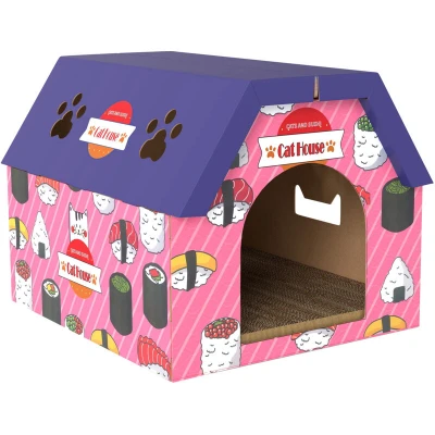 General description Tired of scratched furniture and bored cats? The PawHut cardboard cat house, inspired by sushi, transforms your space with playful patterns and paw-shaped vents. Its bright pink and purple tones create a whimsical backdrop for adorable cat photos, while the spacious inner area offers a cozy retreat and private play space for cats under 4 kg—making every day more joyful. Technical specifications Colour: Purple, Pink Material: Corrugated Cardboard Overall Dimension: 45.5L x 40W x 35.5H cm Internal Space Dimension: 45L x 40W x 32H/21H cm Door Opening Dimension: 20W x 21H cm Maximum Load: 4 kg Item Label: D30-894V00PK Usage Combines cat house and scratcher, offering play and cozy resting space Corrugated cardboard attracts scratching, protecting sofas and curtains Includes cat grass to entice play and help cats adapt quickly Adorable themed design brightens your home and delights your cat Spacious inner fits cats under 4kg, easy for them to enter Made from thick AB