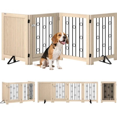 PawHut 4 Panel Freestanding Pet Gate Foldable with Door for Stairs, Doorway