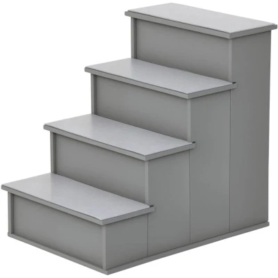 General description It's now easier for pets to reach their favorite spot, thanks to these stairs from PawHut. Each step is covered with a soft cushion for comfort and to prevent slipping. The cushions are removable for easy washing, ensuring good hygiene. These steps are ideal for older pets or those with mobility issues, providing convenience and access to places they might struggle to reach. Technical specifications Colour: Grey Material: E1 class MDF and short plush Dimensions: 54.2H x 40L x 59W cm Step mat dimensions: 38.5L x 15W cm Step heights: 14.3 cm, 27.6 cm, 40.9 cm, and 54.2 cm Weight capacity: 30 kg Other information Assembly required Cushion secured with velcro