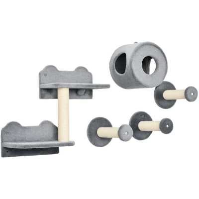 PawHut 5 PC Wall Mounted Cat Tree Furniture Perch House Scratching Post Grey