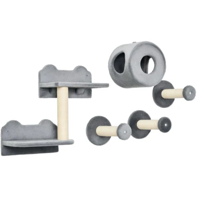 PawHut 5Pcs Cat Wall Furniture with Perch, House, Scratching Post, Mounted Tree for Indoor Cats Grey