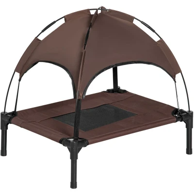 PawHut 61 cm Elevated Dog Bed Cooling Raised Pet Cot UV Protection Canopy Coffee
