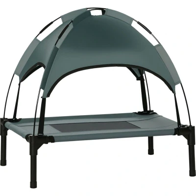 PawHut 61cm Elevated Dog Bed Cooling Raised Pet Cot UV Protection Canopy Grey