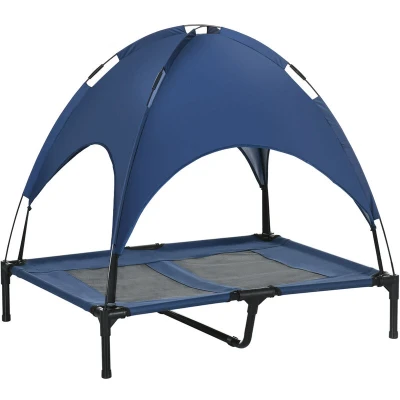 PawHut 92cm Elevated Dog Bed Cooling Raised Pet Cot UV Protection Canopy Blue