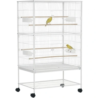 PawHut Bird Cage Aviary for Budgies Canaries w/Rolling Stand Slide Out TrayD10 075WT